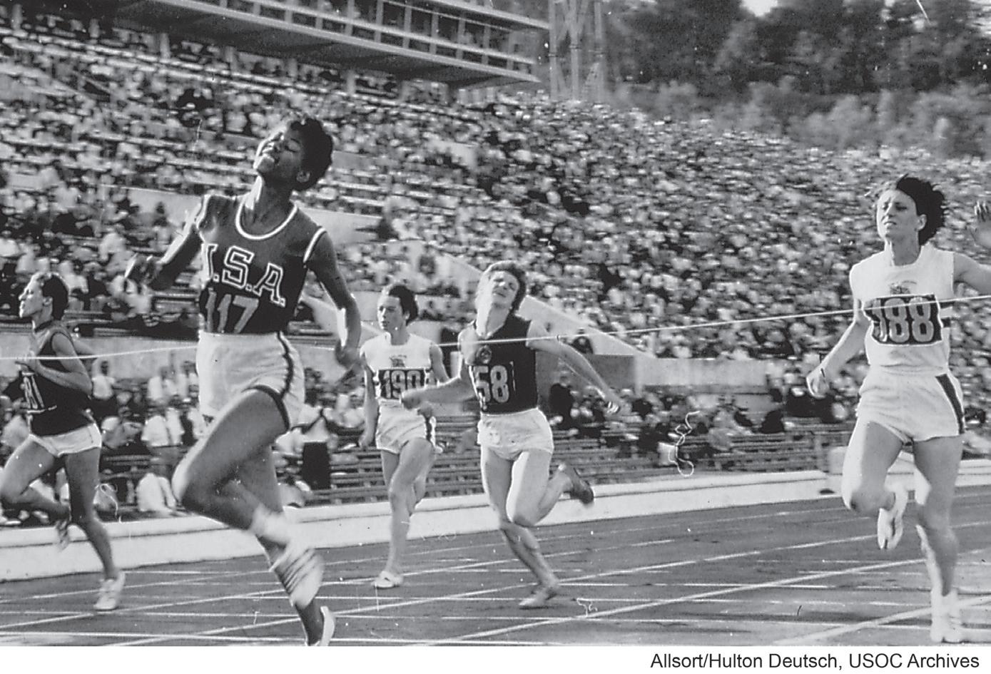 Rome 1960 Olympics. Wilma Rudolph (USA) wins Gold in the 100m, August 3, 1960.