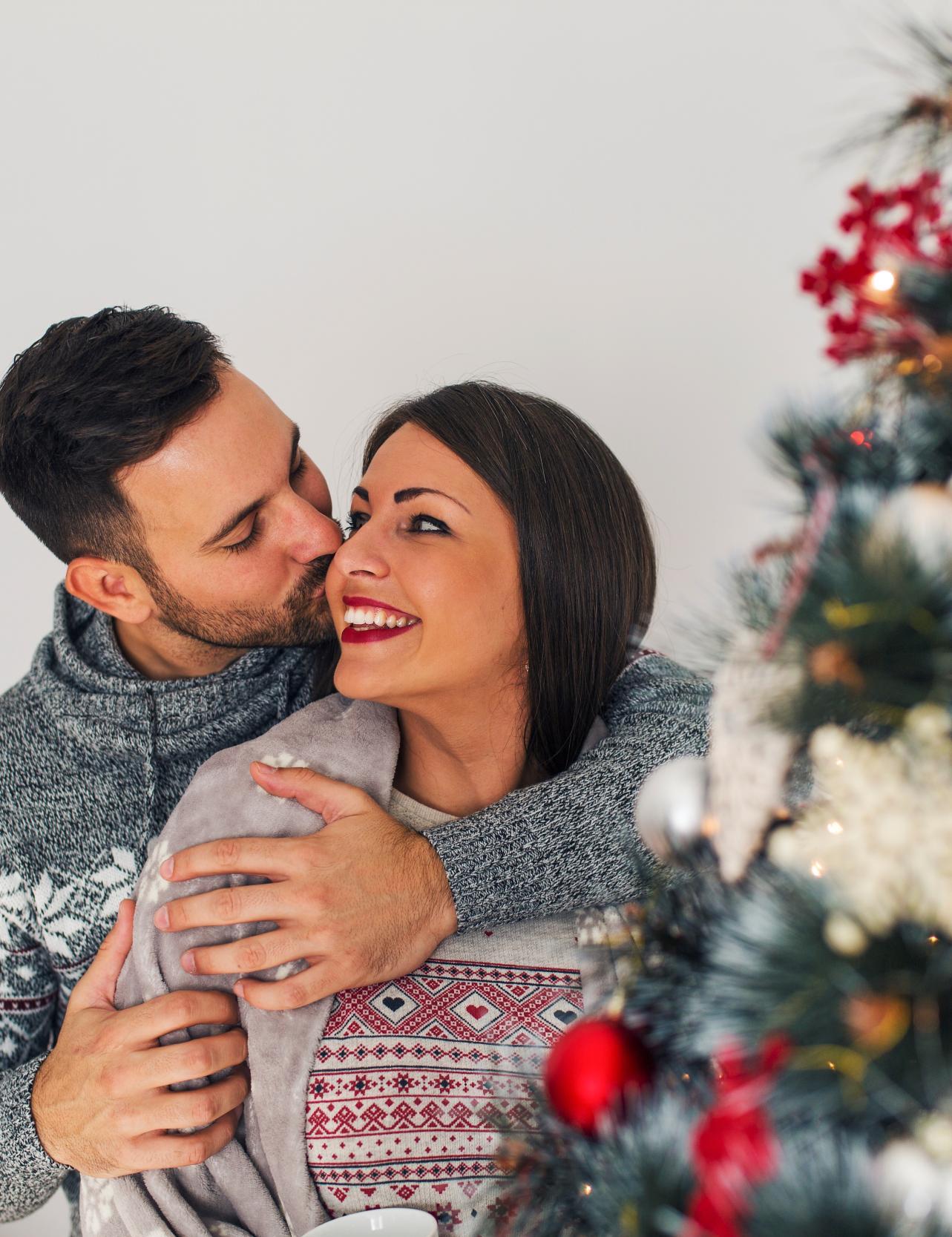 Sharing a hug is warm. Sharing a hug in warm sweaters makes Christmas comfortable and special.