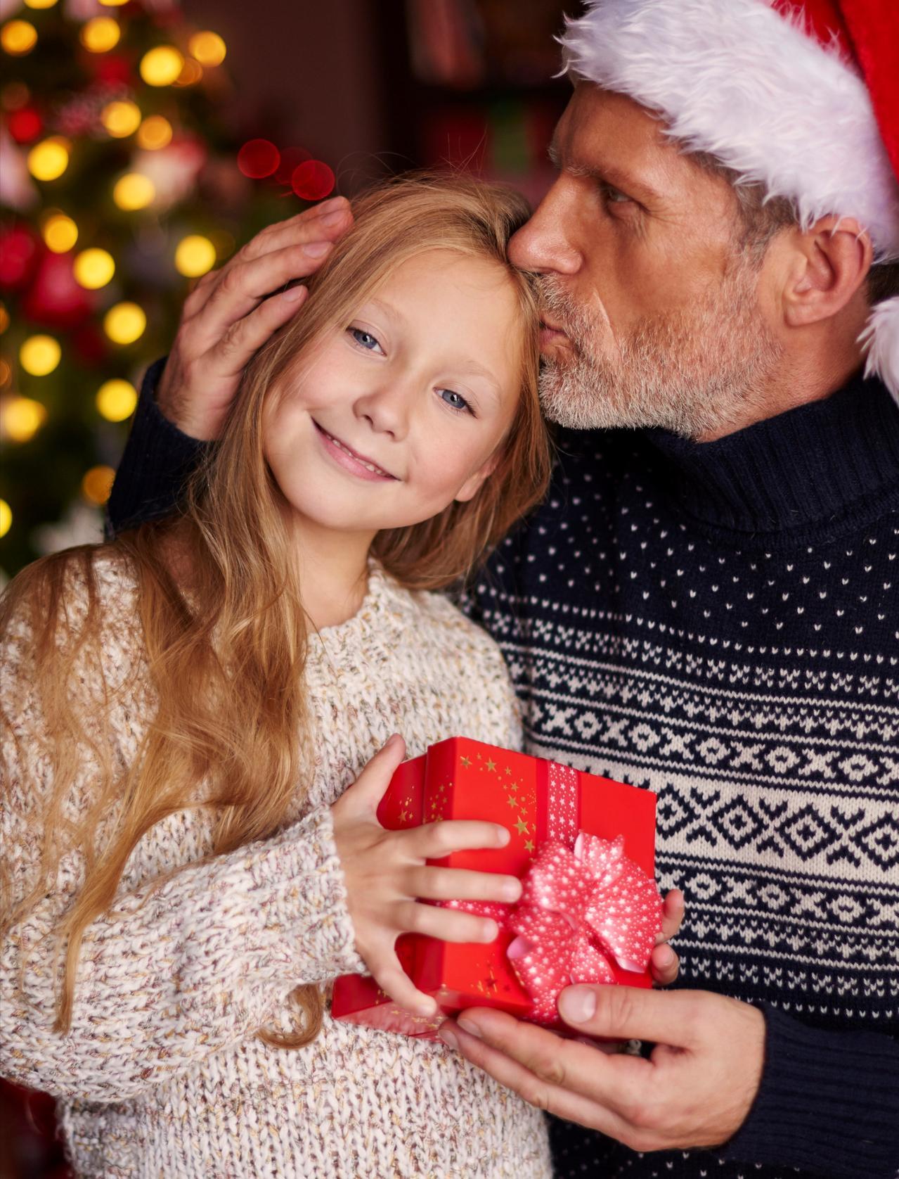 Fathers often will provide protection and guidance for their daughters. They also provide a sense of fashion when gifting their kids with warm sweaters.