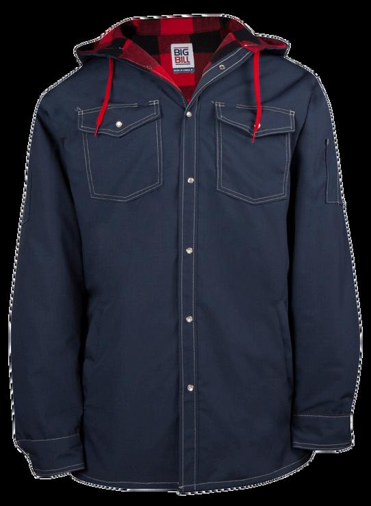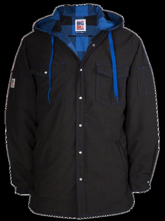 Left interior chest pocket | 2 large bottom patch pockets with concealed snap flap closure and side hand warmer pockets | Using Nomex® thread | double stitch on pocket, serge and single stitch on all other seams | Concealed snap front closure | Adjustable cuffs with snaps | Shirt collar | Bar-tacked pockets