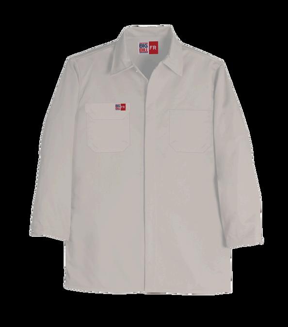 No pockets | Using Nomex® thread, serge and single stitch on all other seams | Concealed snap front and cuff closure | Double back yoke | Regular fit | Bar-tacked at all stress points | Banded collar with stays