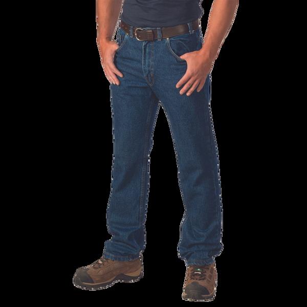 Sits at waist | Relaxed fit in seat and thigh with slightly tapered leg | 2 front riveted pockets | 2 back pockets | 7 Belt loops | Brass zipper & button front closure | High resistance thread | Bar-tacked at all stress points