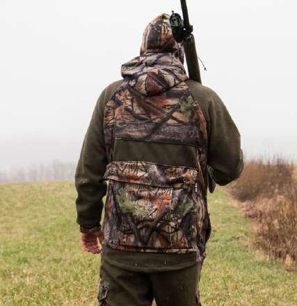 Unlined interior of jacket | 2 vertical chest pockets with zipper closure | 2 hand warmer pockets | 2 Large extensible pocket with buttons with Waterproof Exodry® membrane | 1 Game Bag