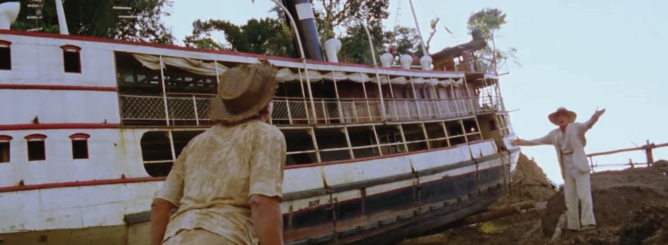 Fitzcarraldo slaagt erin om het schip de berg over te krijgen.
