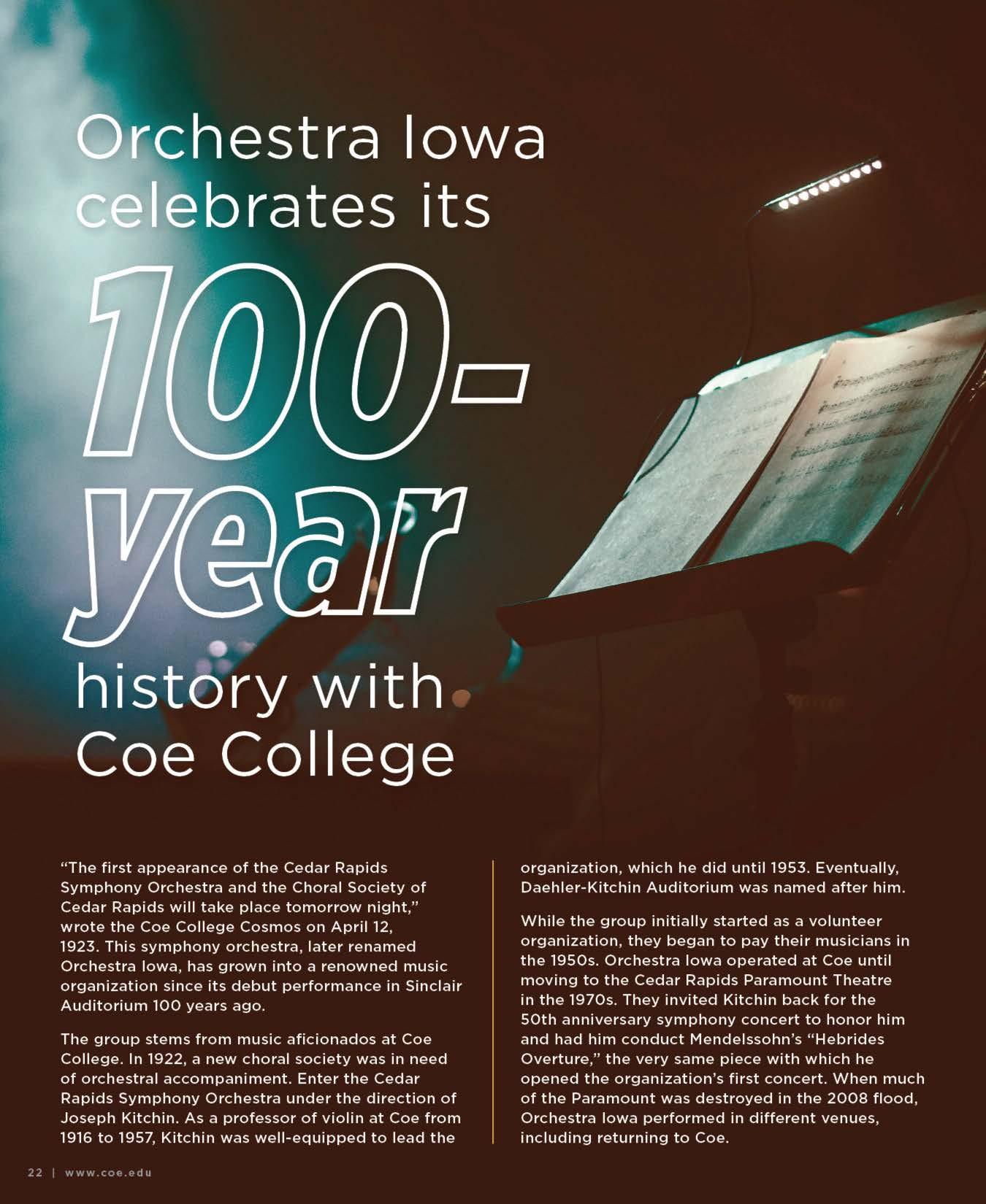 As we outline Coe's next chapter during a time of generational challenge, we will build upon the foundation and spirit o·f the college while envisioning its brightj accomplished and reimagined future. Formal strategic planning meetings commenced in December, and our conversations surround how to position our institution while addressing the current disruption within higher education. A key focus on financial health., student experience and academic programming remain at the heart of our planning process. I am confident the plan will also strengthen the existing connections between Coe and Cedar R.apids as we look to be a pillar and an influential resource within our community.