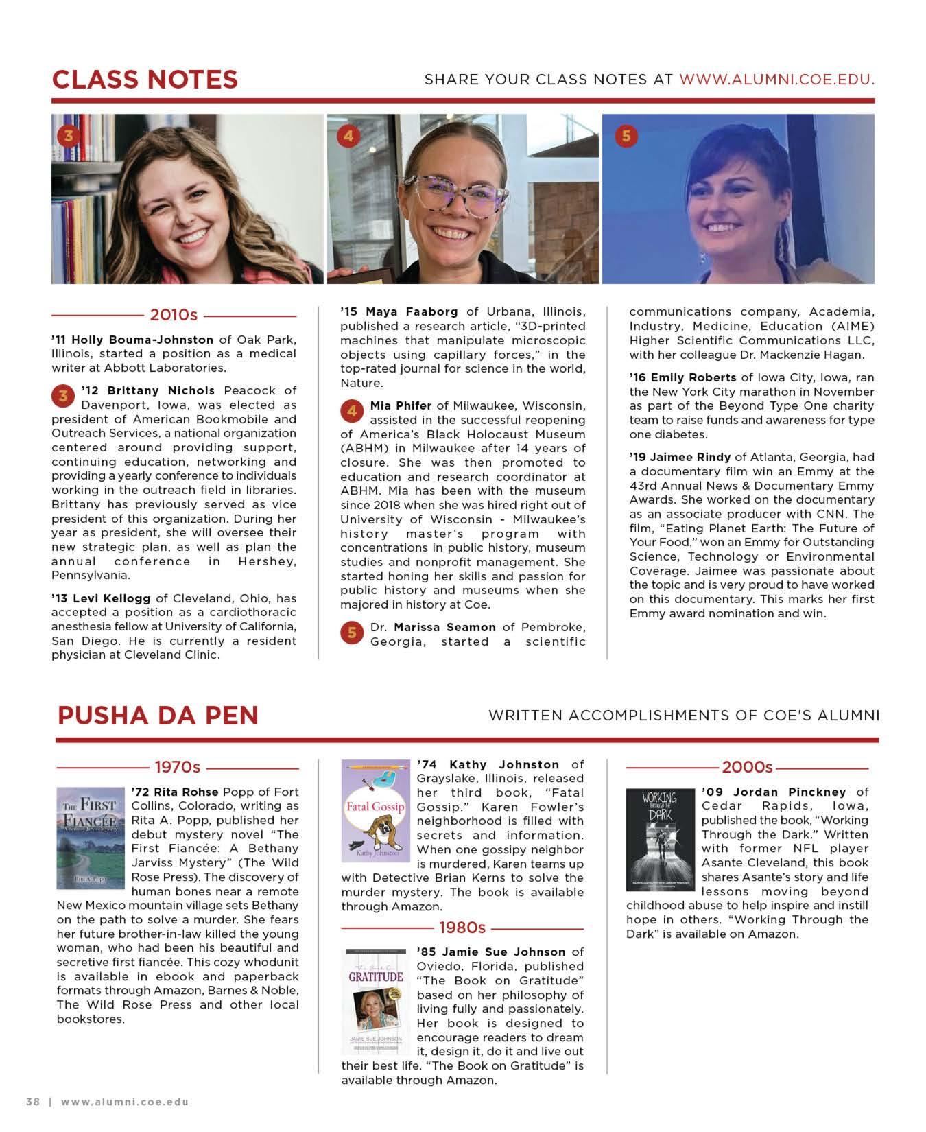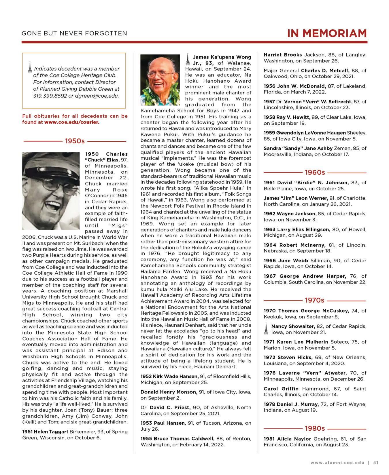 ~ i. Indicates decedent was a mem.ber of the Coe Colle g·e Heritage Club. For information, contact Director of Planned Giving .Debbie Green at 319.399 8592 or dgreen@coe edu.