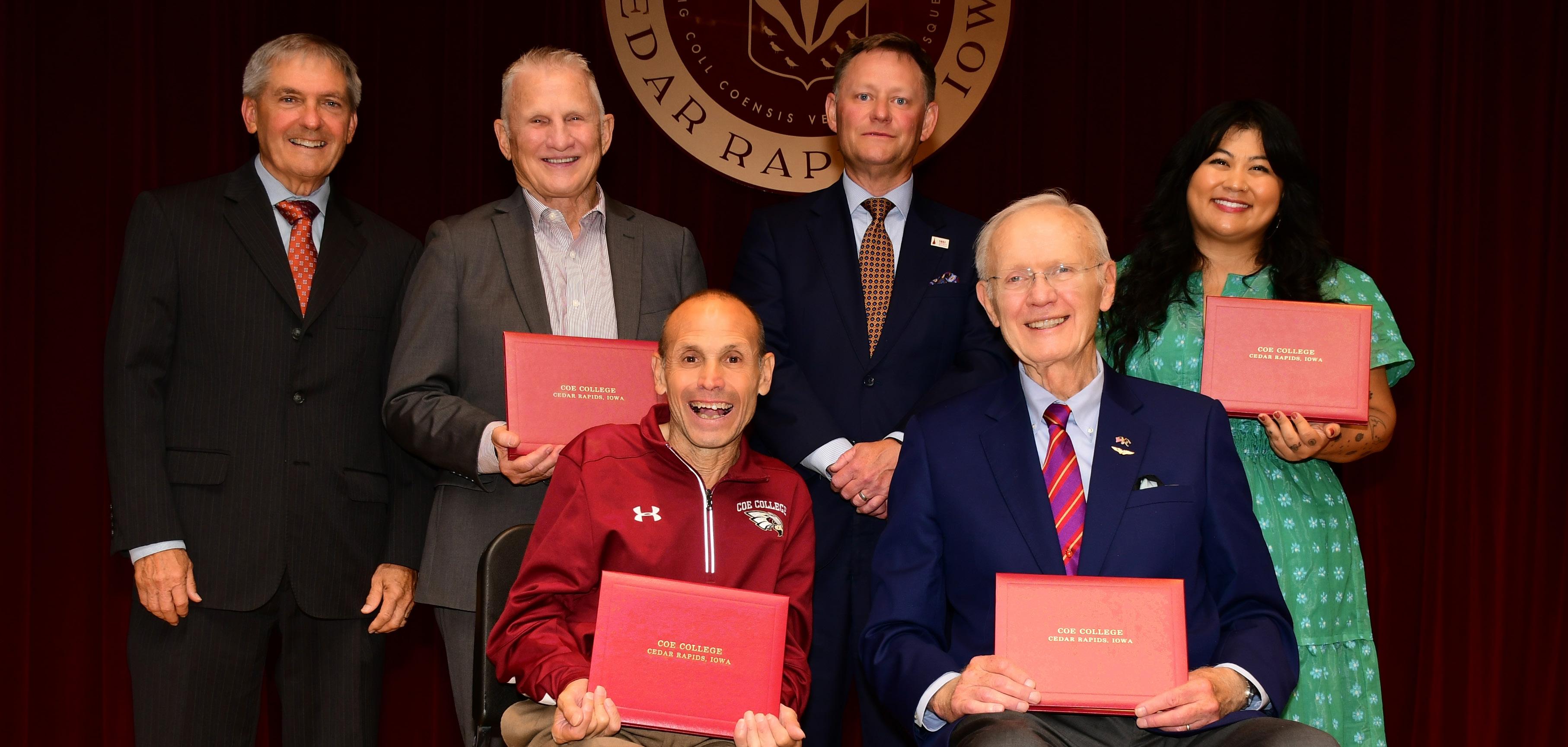 Ken Golder ’82 Toby Lister '24 Ed Walsh ’70 Vince Martin Coe College President