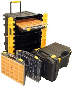 Rígida y resistente. Incluye una bandeja para organizar herramientas. Soporta hasta 120 kg. Asa con sistema de seguridad anti-apertura. Preparada para cierre con candado (no incluido).