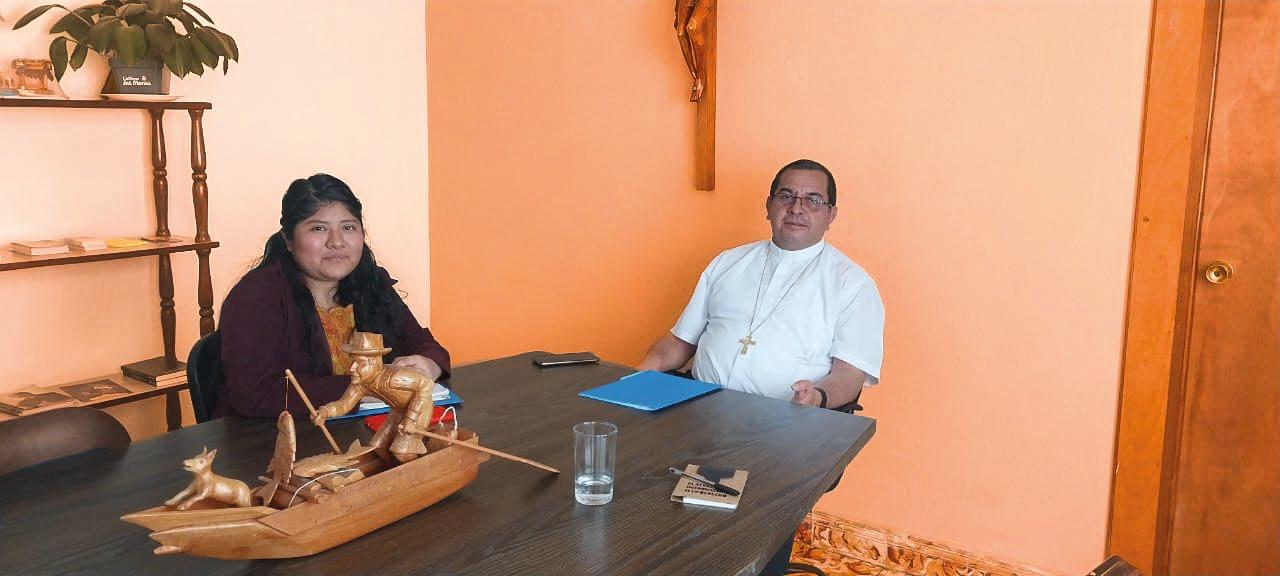 Monseñor Domingo Buezo Leiva junto a organizadora comunitaria de Guatemala Nely Cuj.