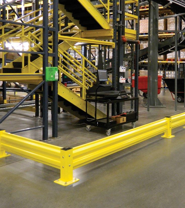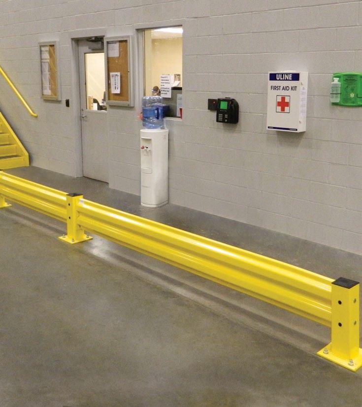 Use heavy-duty guardrail to safeguard manufacturing equipment, electrical panels, computer stations, staircases and walkways, in-plant offices, first aid and restroom areas, or anywhere else crash protection is required.