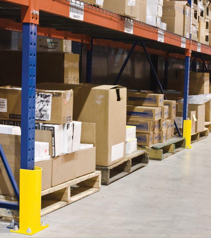 Cogan floor angle guide provides continuous, uninterrupted protection low to the ground. Easy-to-install and cost-effective, our floor angle guide keeps traffic away from critical rack supports, pallet flow rails, walls, offices, storage partitions, and other work areas. Cogan floor angle guide can also be used for narrow aisle storage applications. Prevent narrow aisle fork trucks, lifts and order pickers from coming into contact with the rack. Your racking remains intact and your assets undamaged.