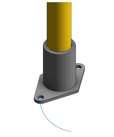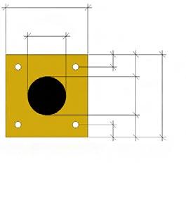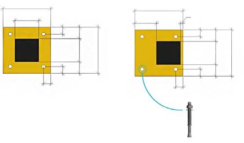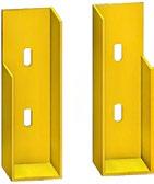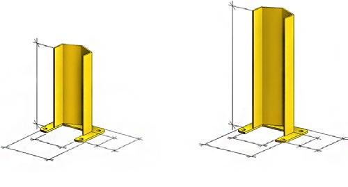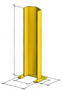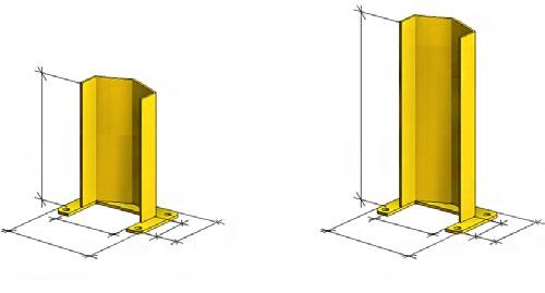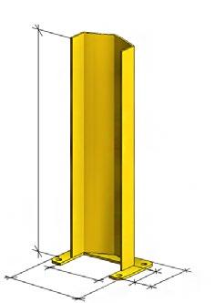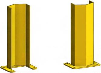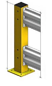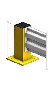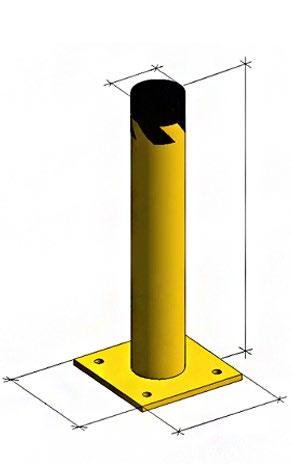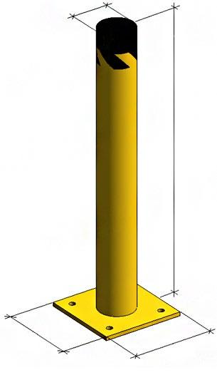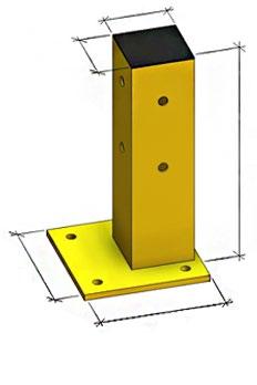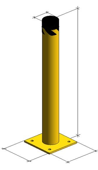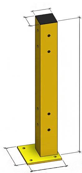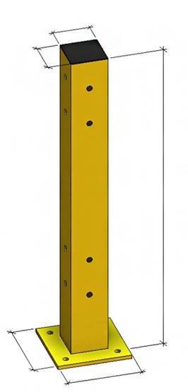 Double Guardrail: The standard 44”column is made of steel and is designed to support two parallel guardrails. Each column is equivalent to 5” x 5” x 1/8” thick and has 4 punched holes with a diameter of 3/4” on e ach side. The column is secured at the top with a customized plastic black cap and is welded to a 10” x10” x 1/2” baseplate consisting of 4 evenly spaced 3/4” diameter hole at each corner. The columns are powder-coated Safety Yellow and weighs a total of 45 lbs.