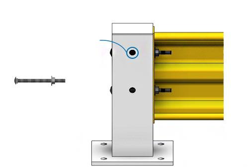 The heavy-duty guardrail is connected to the columns using 2 - ø1/2” x 7” carriage bolts.