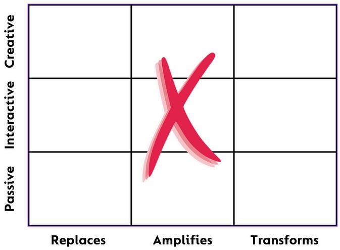 Amplificación: Utilizar la tecnología para mejorar las actividades existentes (por ejemplo, utilizar tarjetas didácticas digitales interactivas en lugar de las de papel).