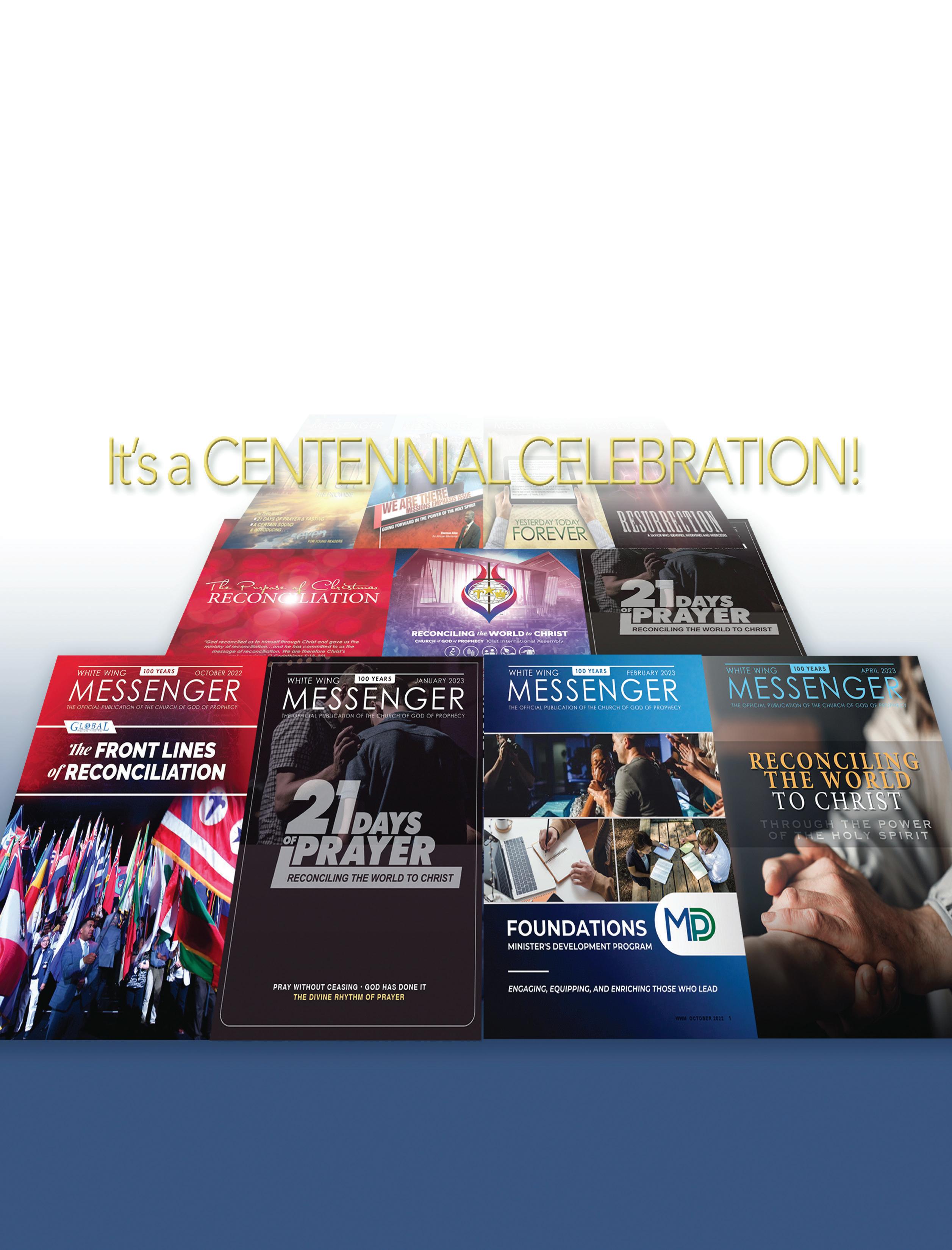 White Wing Messenger (ISSN 0043-5007) (USPS 683-020) is published monthly as the ofcial publicaton of the Church of God of Prophecy, 3720 Keith St. NW, Cleveland, TN. Send all materials for publicaton to Editorial Department; PO Box 2910, Cleveland, TN 37320-2910; e-mail: editorial@cogop.org; fax: (423) 559-5151. For subscripton rates, visit www.cogop. org; call (423) 559-5540; e-mail: subscriptons@cogop. org. Subscripton rate: $18.00 per year, payable to White Wing Messenger by check, draf, or money order. Periodical postage paid at Cleveland, TN 37311 and at additonal mail ofce. Donatons for the White Wing Messenger may be sent to the above address. All Scripture references are from the King James Version unless otherwise indicated. POSTMASTER: Send address change to White Wing Messenger, PO Box 2910, Cleveland, TN 37320-2910. Please submit all material to the White Wing Messenger; Managing Editor; P. O. Box 2910; Cleveland, TN 37320-2910; phone (423) 559-5320; e-mail us at Editorial@cogop.org.