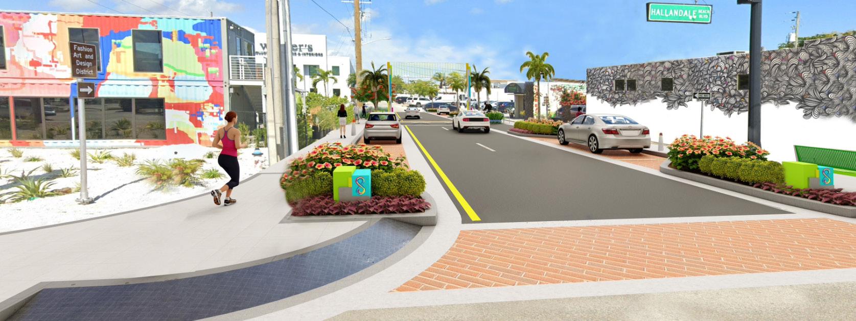 The Hallandale Beach Community Redevelopment Agency (HBCRA) has been actively working to revitalize major corridors within the Hallandale Beach redevelopment area, particularly in District 8, formerly known as the Fashion Art and Design District (FADD). This district is located on NE 1st Avenue, between Hallandale Beach Boulevard and NE 5th Street.