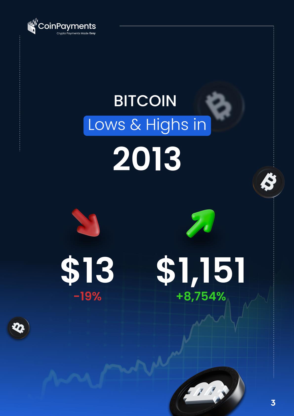 Bitcoin's price has gone up and down since its inception in 2009, but contrary to what it may seem, this is a common trend among any asset class during its first years of life. If the shares of Google, Amazon, and many other startups also suffered this volatility in their early years, you will understand why the same is happening with a brand-new asset class like Bitcoin, which many investors are still trying to figure out what it is. In this presentation, we will show you Bitcoin's yearly lows and highs since 2012, as well as its increases and decreases in each period. You can accept Bitcoin payments in your business and exchange it for your local currencies with CoinPayments. Register now at coinpayments.net/register and get started today!
