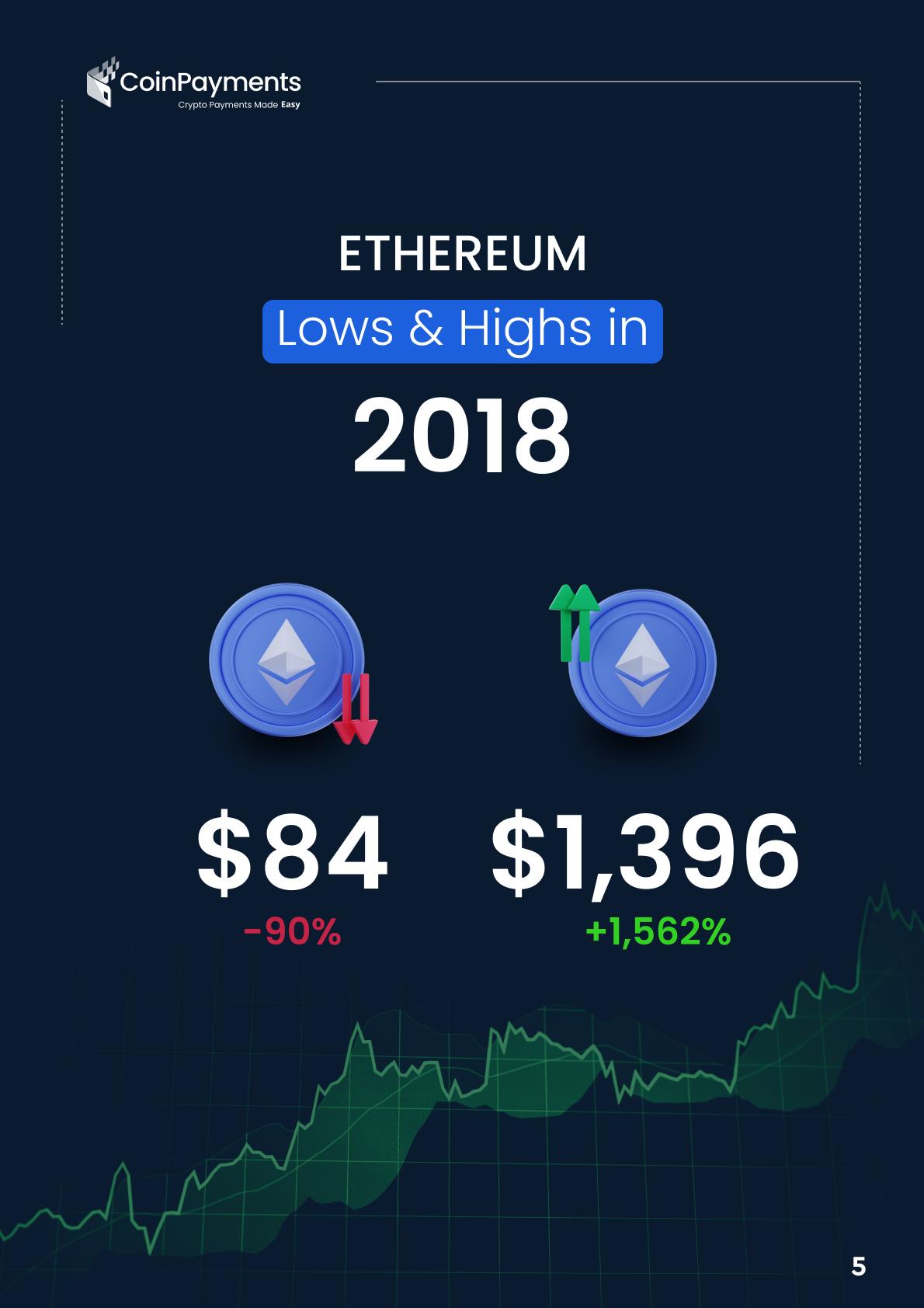 Ethereum's price seems to be bouncing a lot in the last months. This cryptocurrency can go up or down in price over short periods of time, but even more so over longer periods. This high volatility was and still is common among any other cryptocurrency or emerging stock in its early stage. To better understand these market movements, it’s a good moment to remember that Ethereum it’s just 7 years old. Do you want to better understand Ethereum’s market movements over the time? In this presentation, we will show you Ethereum's yearly lows and highs since 2015, as well as its increases and decreases over time. You can accept Ethereum and over 120 other coins in your business with CoinPayments. You can also exchange it for your local currencies with ease with one of our partners. Register now at coinpayments.net/register and get started today!