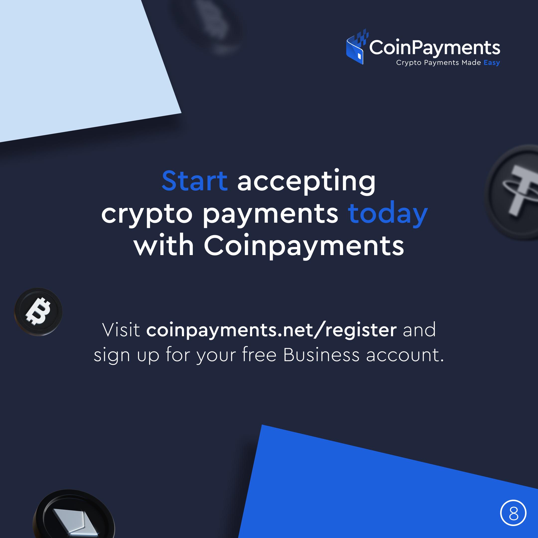 CoinPayments is the world's leading cryptocurrency payment gateway, with more than 117,000 merchants already accepting cryptocurrencies in their business. You may be wondering if your business is suitable to accept cryptocurrencies. In this presentation, we show you how CoinPayments can help your business, whatever industry you are in. Don't think it twice and start accepting crypto payments with CoinPayments. Register now at coinpayments.net/register and get started easily today.