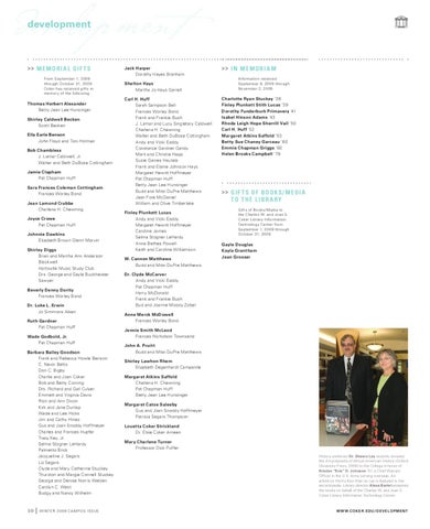 >> M emorial g ifts From September 1, 20 0 9 through October 31, 20 0 9 Coker has received gifts in memor y of the following: