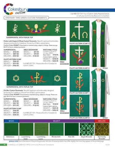 SUPERFRONTAL with poplin top Chalice with Grapes & Wheat Custom Paraments. Beautiful appliqué & embroidery designed exclusively for Cokesbury. Choose from 8 fabric options below. Custom Order #536447. Prices based on standard sizing, subject to change. Please see pgs.
