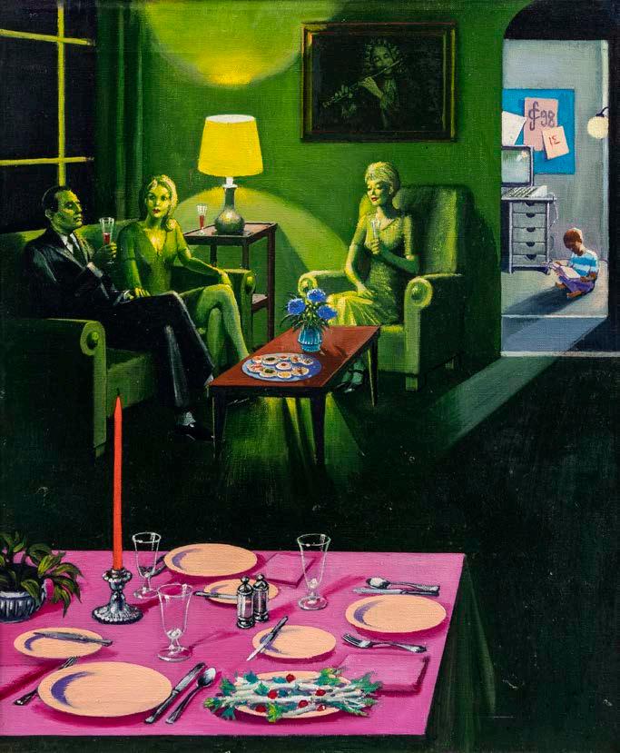 Roma 1935 “Invito a cena”, 1998, olio su tela, siglato in alto a destra SC 98, firmato datato e titolato sul retro, entro cornice 60x50 cm. € 400/600