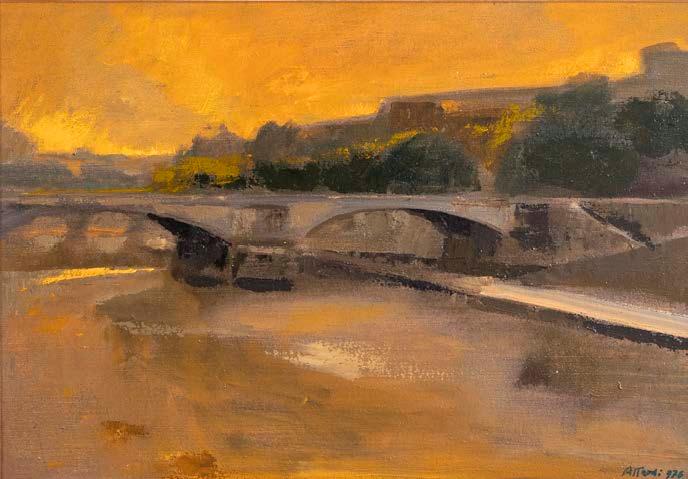 “Veduta del Tevere”, 1976, olio su tela, firmato in basso a destra, firmato e datato sul retro, entro cornice 35x50 cm.