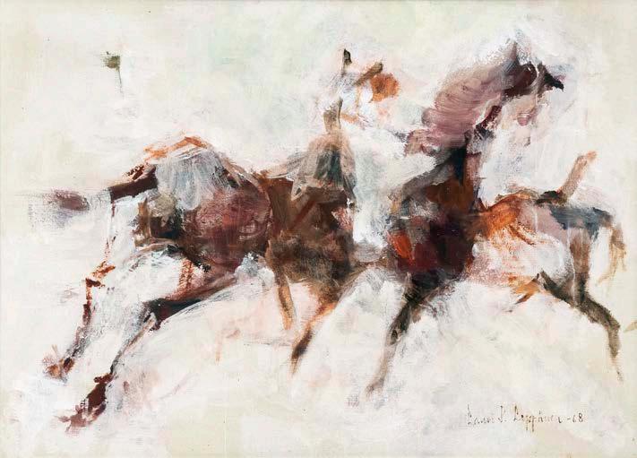 “Cavalli”, 1968, olio su tela, firmato e datato in basso a destra, entro cornice 50x70 cm.