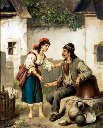 “Il venditore di cipolle”, olio su tela, firmato in basso a sinistra, entro cornice