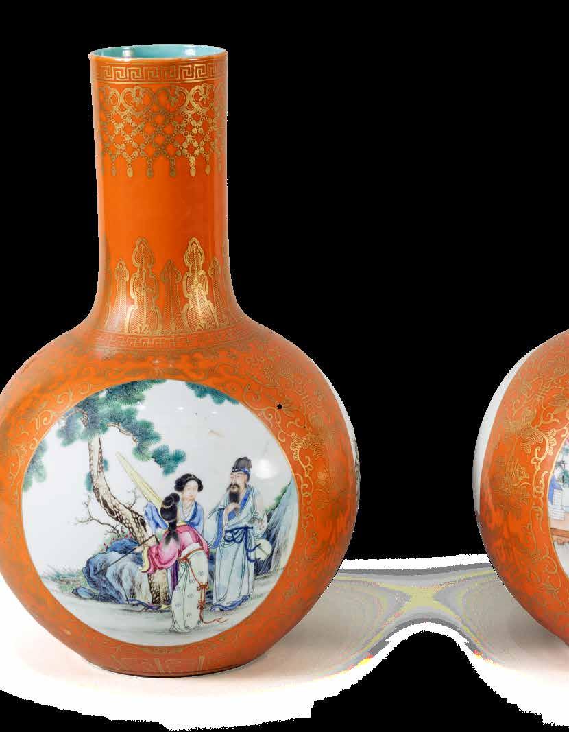 decorati con figure mitologiche entro riserve ovali, manici a foggia di cigni, restauri e mancanze