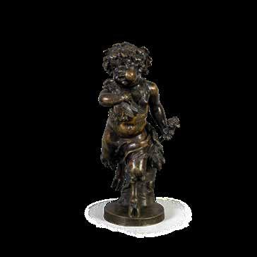 raffigurante scena di genere, poggiante su base a roccailles decorata con mascheroni e volute, difetti e restauri