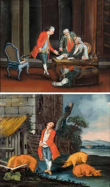 “Trompe l’oeil”, due stampe acquerellate su carta, entro cornici