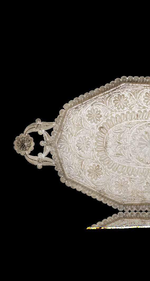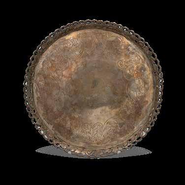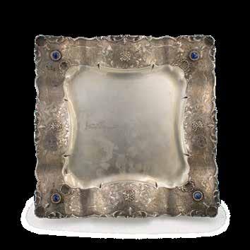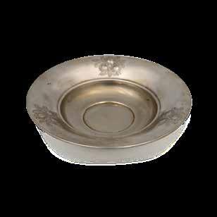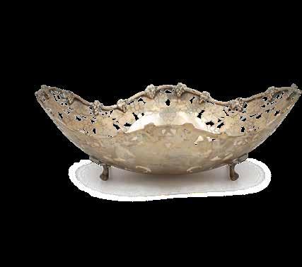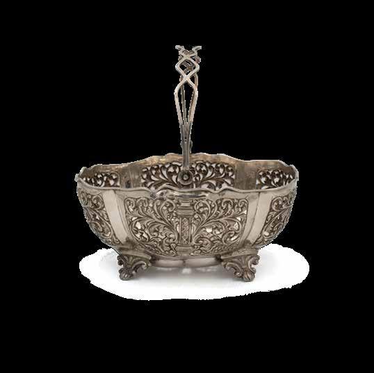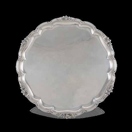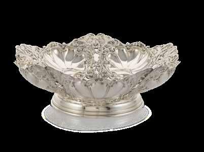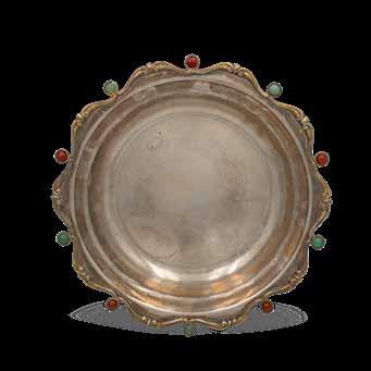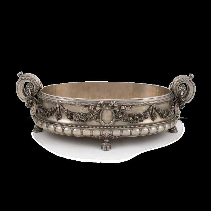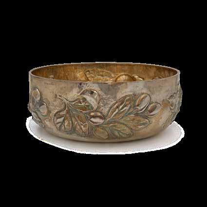 orafo Guerci, Alessandria, corpo circolare sbalzato e cesellato con motivi vegetali, peso 1321 gr. 21x28 cm.