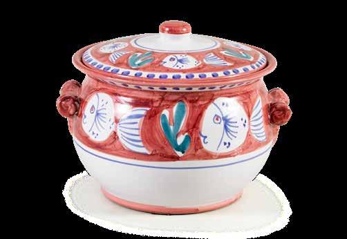zuppiera in ceramica dipinta in policromia con motivi di pesci 18x24x22 cm.