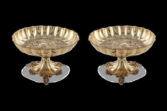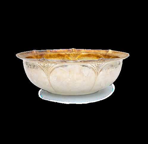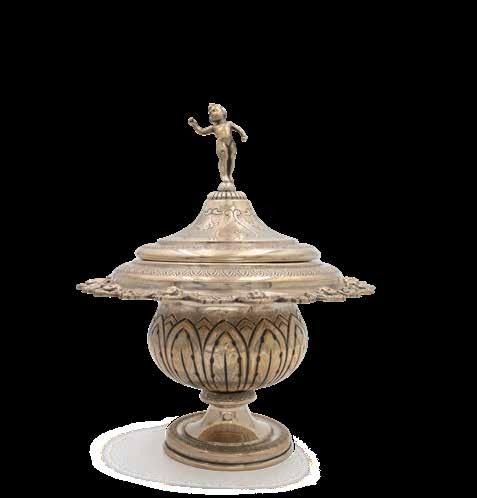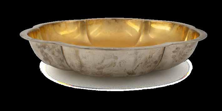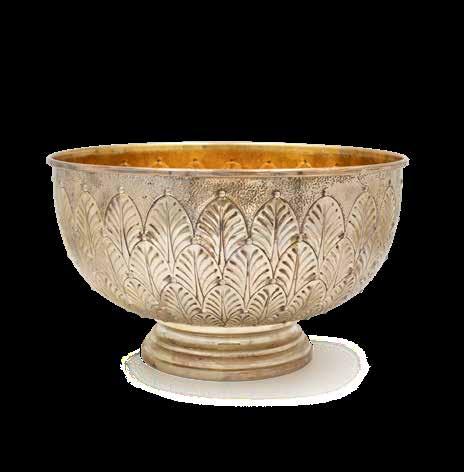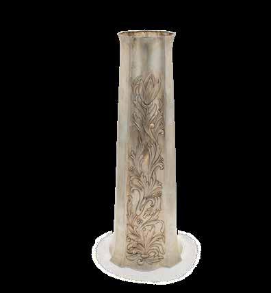 sezione circolare, corpo sbalzato e cesellato con motivi vegetali, interno in argento dorato, peso 1.030 gr.