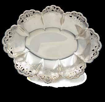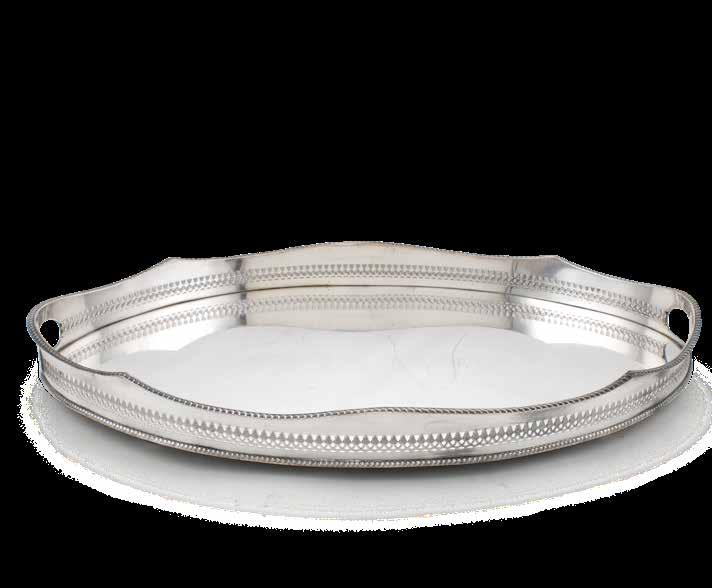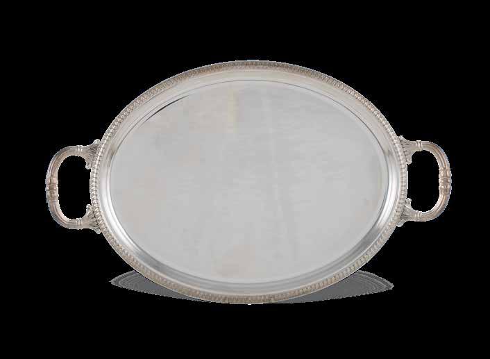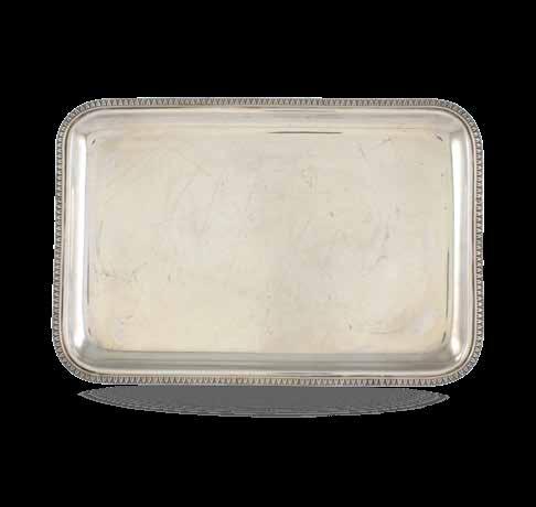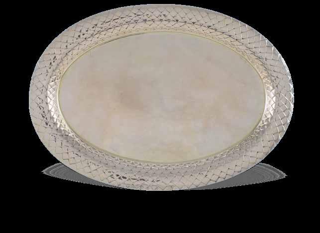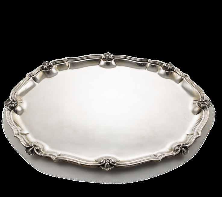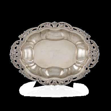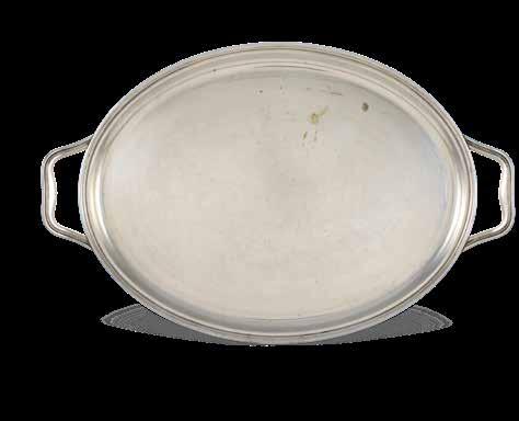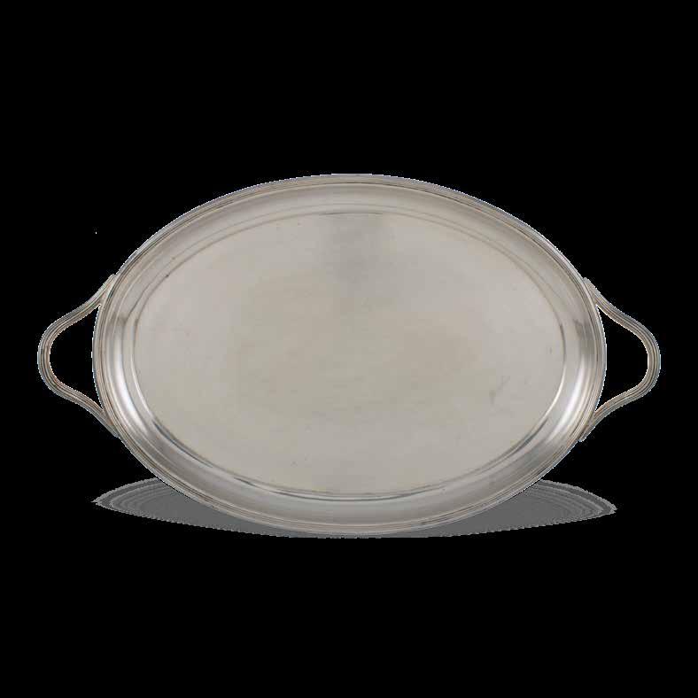 395 VASSOIO OVALE IN ARGENTO Italia, XX Sec. corpo liscio con profilo smerlato, peso 840 gr. 42x26 cm.