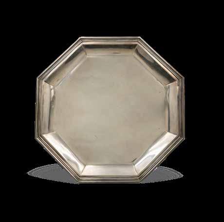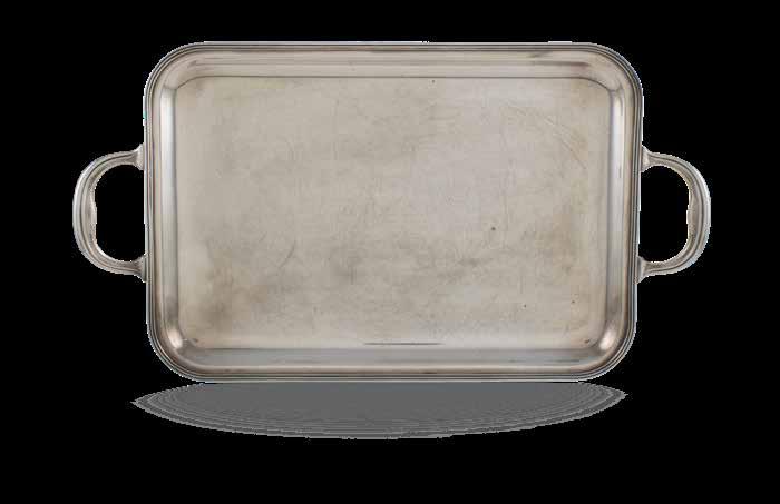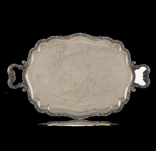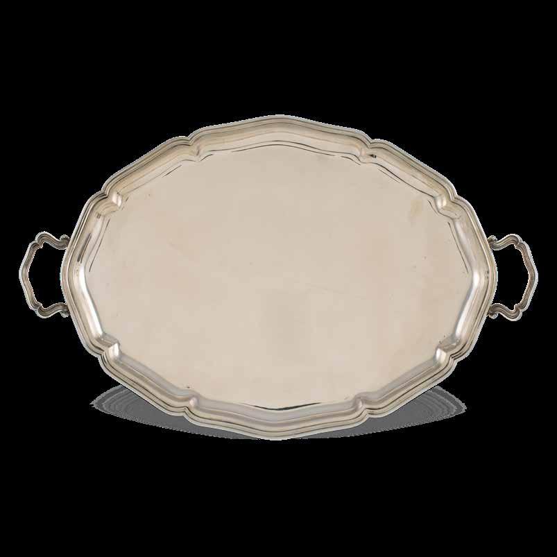 393 VASSOIO IN ARGENTO Italia, XX Sec. corpo liscio, linea sagomata, peso 464 gr. 32x26,5 cm.