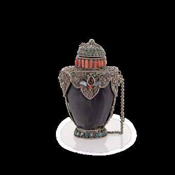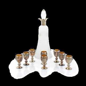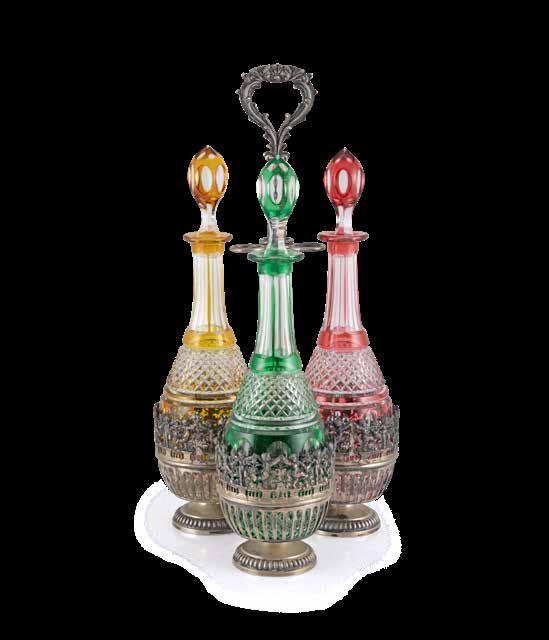 DECANTER IN ARGENTO E CRISTALLO COLORATO