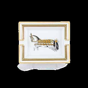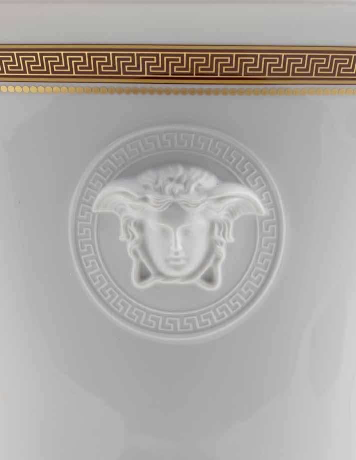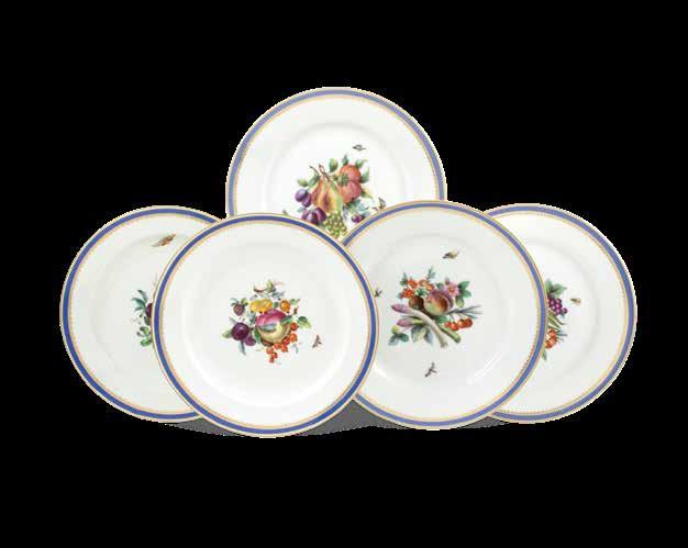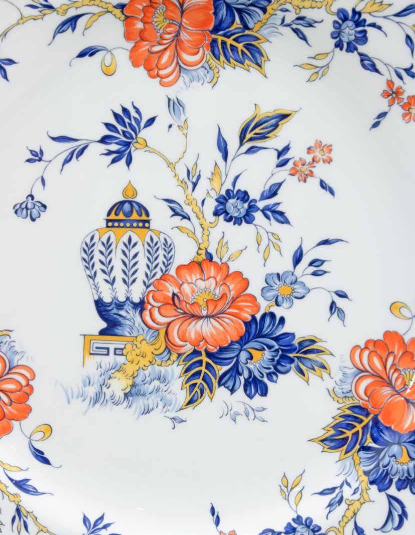 decoro azzurro su fondo bianco e profilato in oro, marchio della produzione.