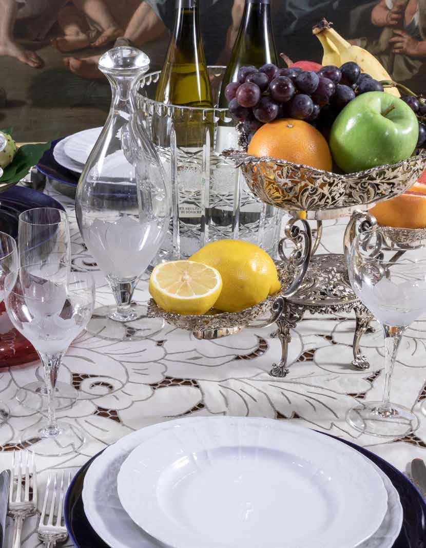 CENTROTAVOLA IN ARGENTO E VERMEIL Italia, XX Sec. orafi Bruno e Cesare Zaramella, Padova, corpo circolare baccellato, interno in vermeil, peso 568 gr.