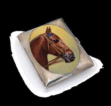 PORTAPENNE IN SHEFFIELD PLATE Inghilterra, XX Sec. corpo sbalzato e cesellato con teste di cavallo h. 12 cm.