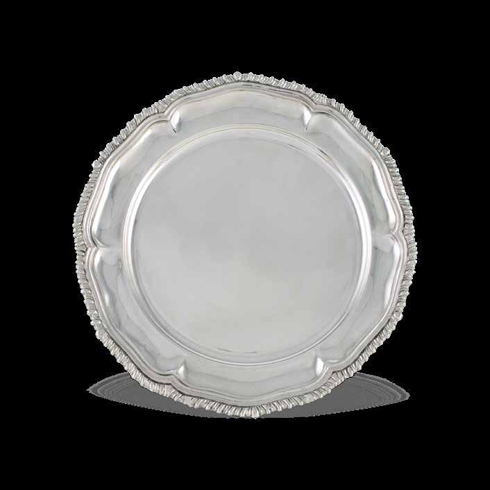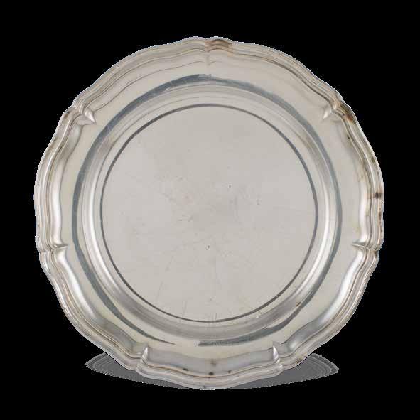 PIATTO IN ARGENTO Stati Uniti, XX Sec. orafo Gorham, corpo liscio con profilo baccellato, peso 316 gr.