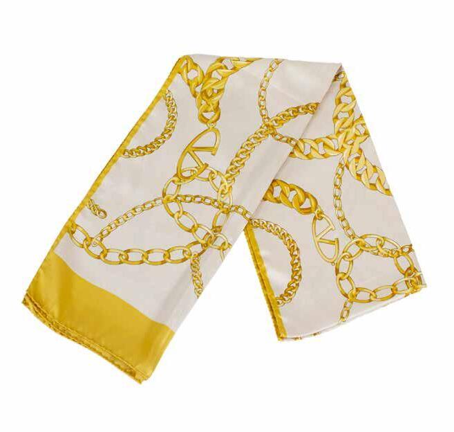 VALENTINO FOULARD VINTAGE IN SETA nei toni dell’avorio e giallo oro misure 170x40 cm.