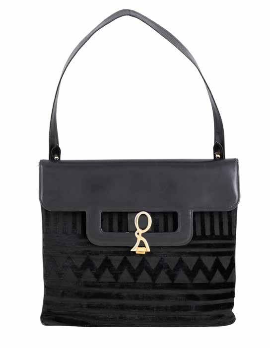ROBERTA DI CAMERINO BORSA A MANO VINTAGE in velluto nero ad un manico in bambù, finiture dorate, interno in pelle ad uno scomparto con tre tasche di cui una a zip, chiusura a scatto misure 17x39x12 cm.