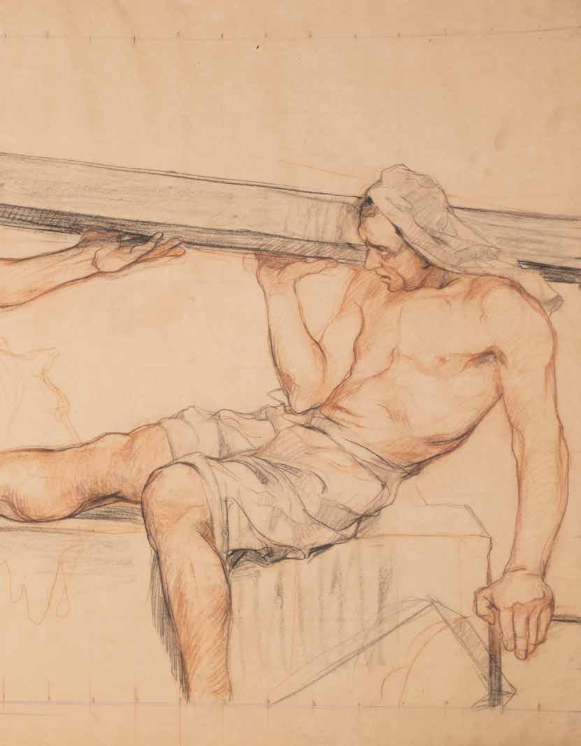 “Gesù cade la prima volta”, 1984 tecnica mista su carta, firmato e datato in basso a destra, entro cornice