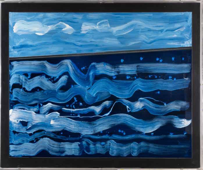 “Senza titolo”, primi anni ‘80 tecnica mista su tela, firmato sul retro, entro cornice di plexiglass 70x100 cm.