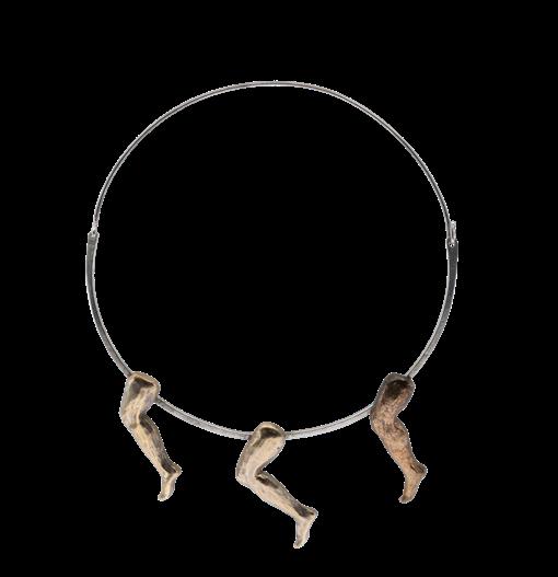 “Girocollo serie Wings” in porcellana nera modellata a mano con ossidi e acciaio, marchio sul retro lunghezza 40 cm.
