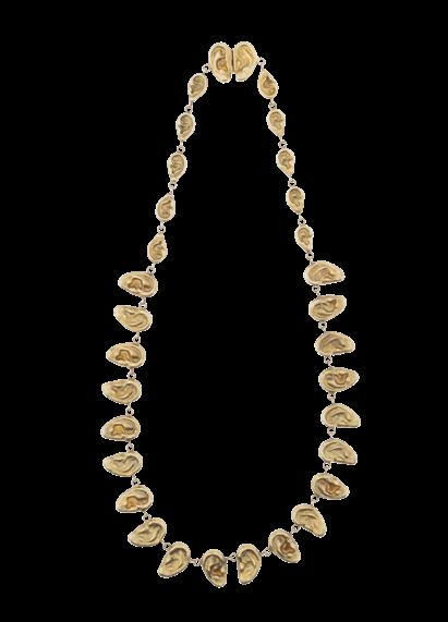 “Collana serie Hive” in porcellana modellata a mano, marchio sul retro, laccio elastico in tessuto lunghezza regolabile 64 cm.