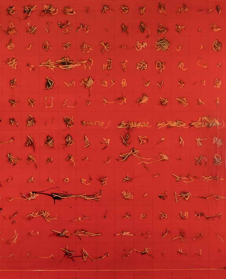 “Alfabeto”, 1974 olio su tela, firmato, datato e titolato sul retro, entro cornice 150x150 cm.