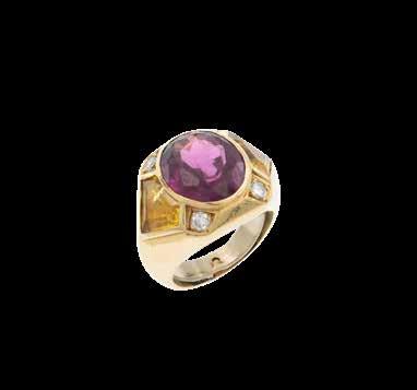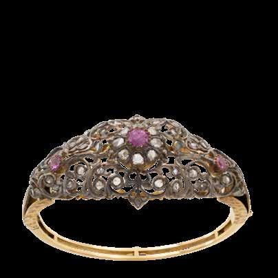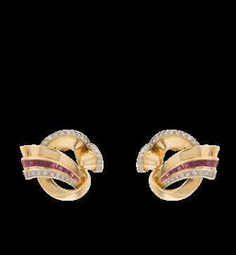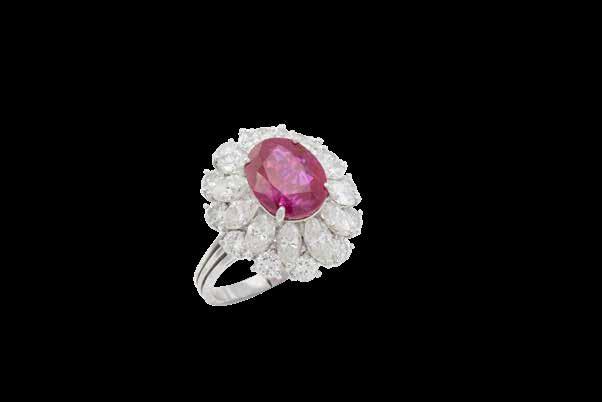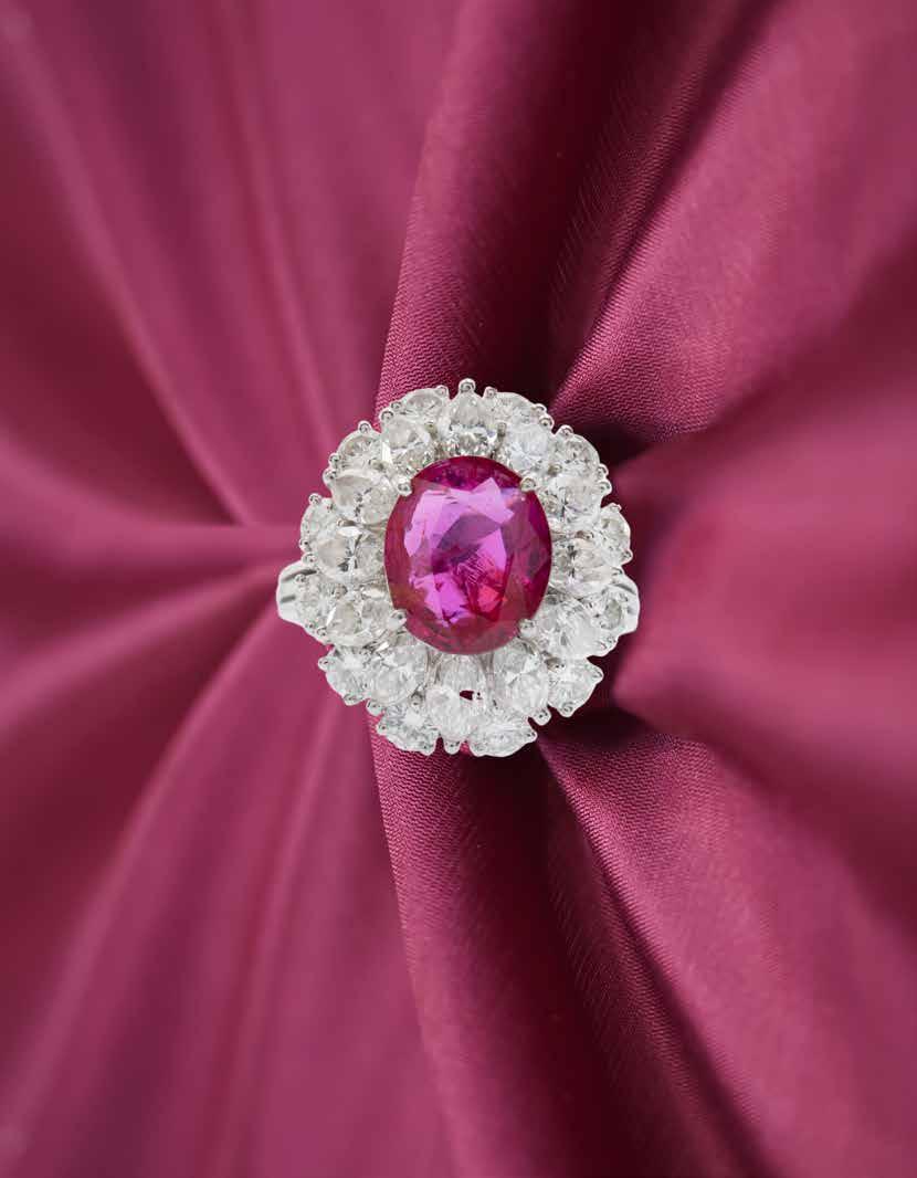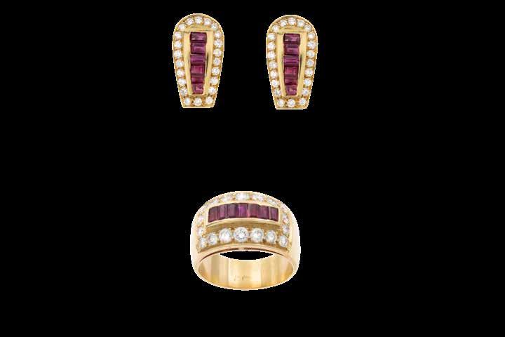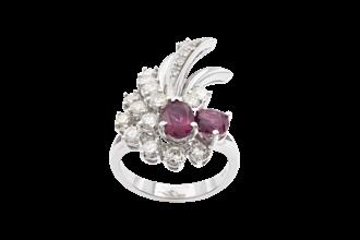 due rubini taglio ovale misto ct 1,30 circa e diamanti taglio brillante ct 1,40 circa, misura 13,5 peso 13 gr.